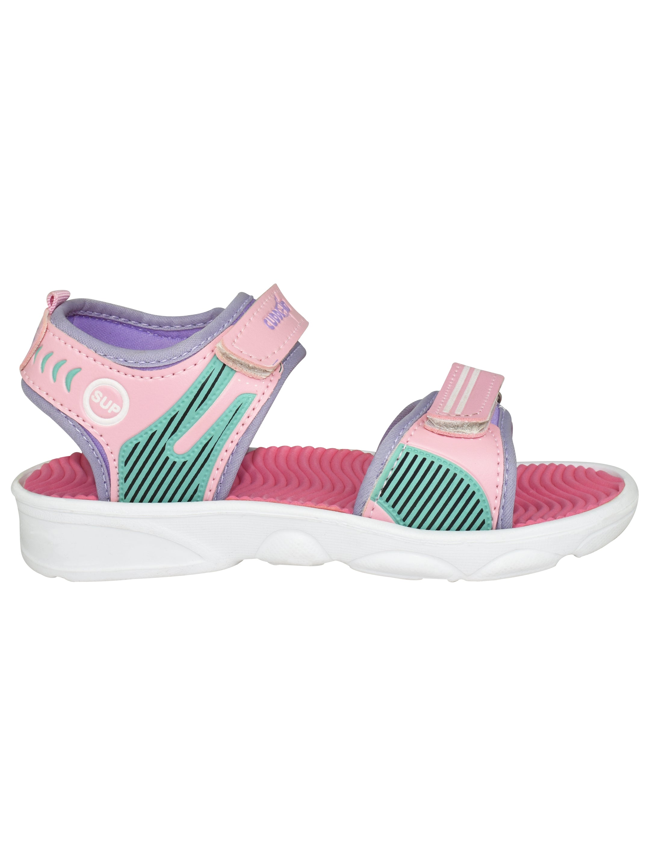 These pink beach sandals are light and comfortable. They are easy to clean and work well for girls who want something bright and cheerful.
